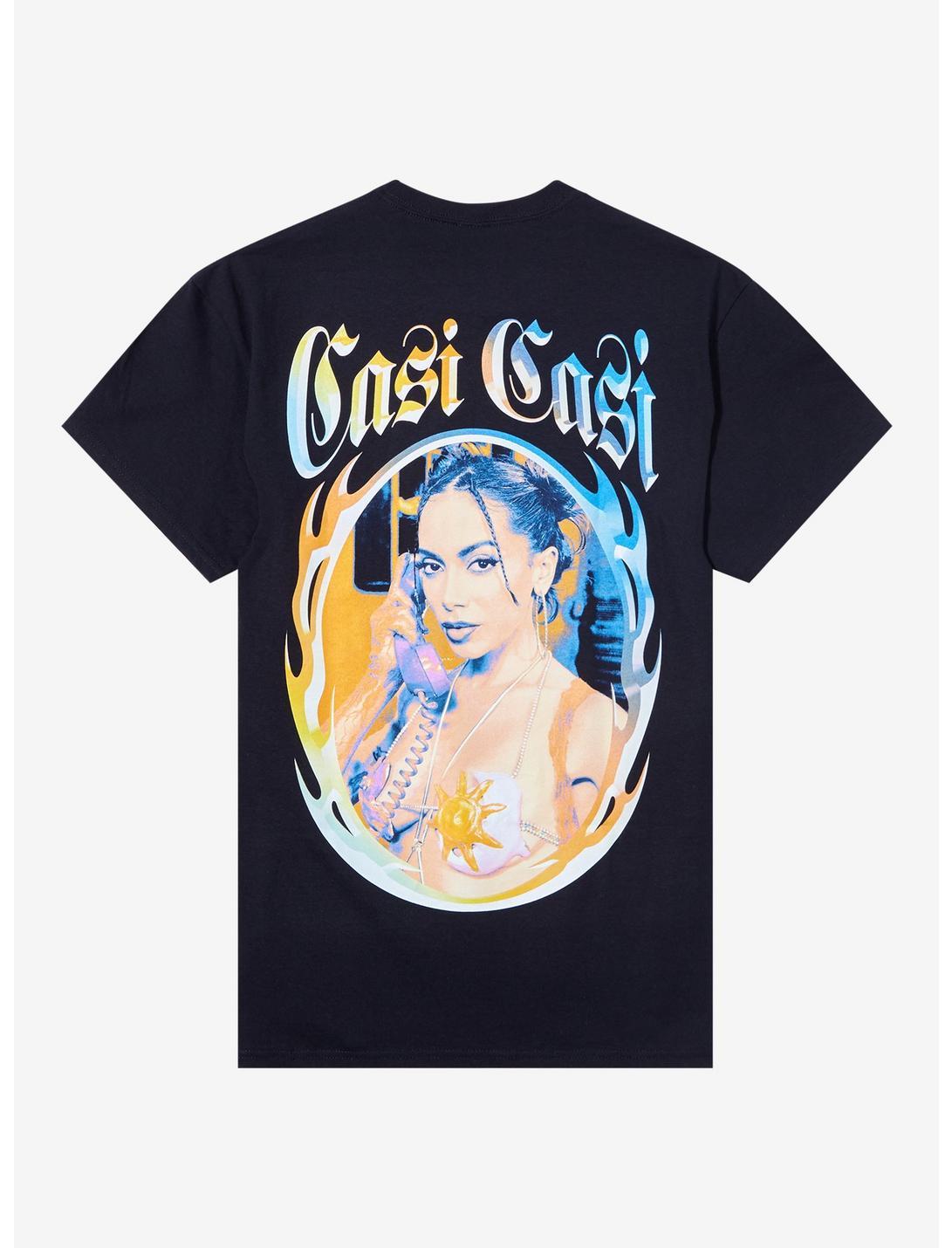 Bump "Casi Casi" while you throw on this Anitta tee. It has the artist's name on the front in multi-colored font, and a large portrait of her holding a phone and the track title above.100% cottonWash cold; dry lowImportedListed in men's/unisex sizes