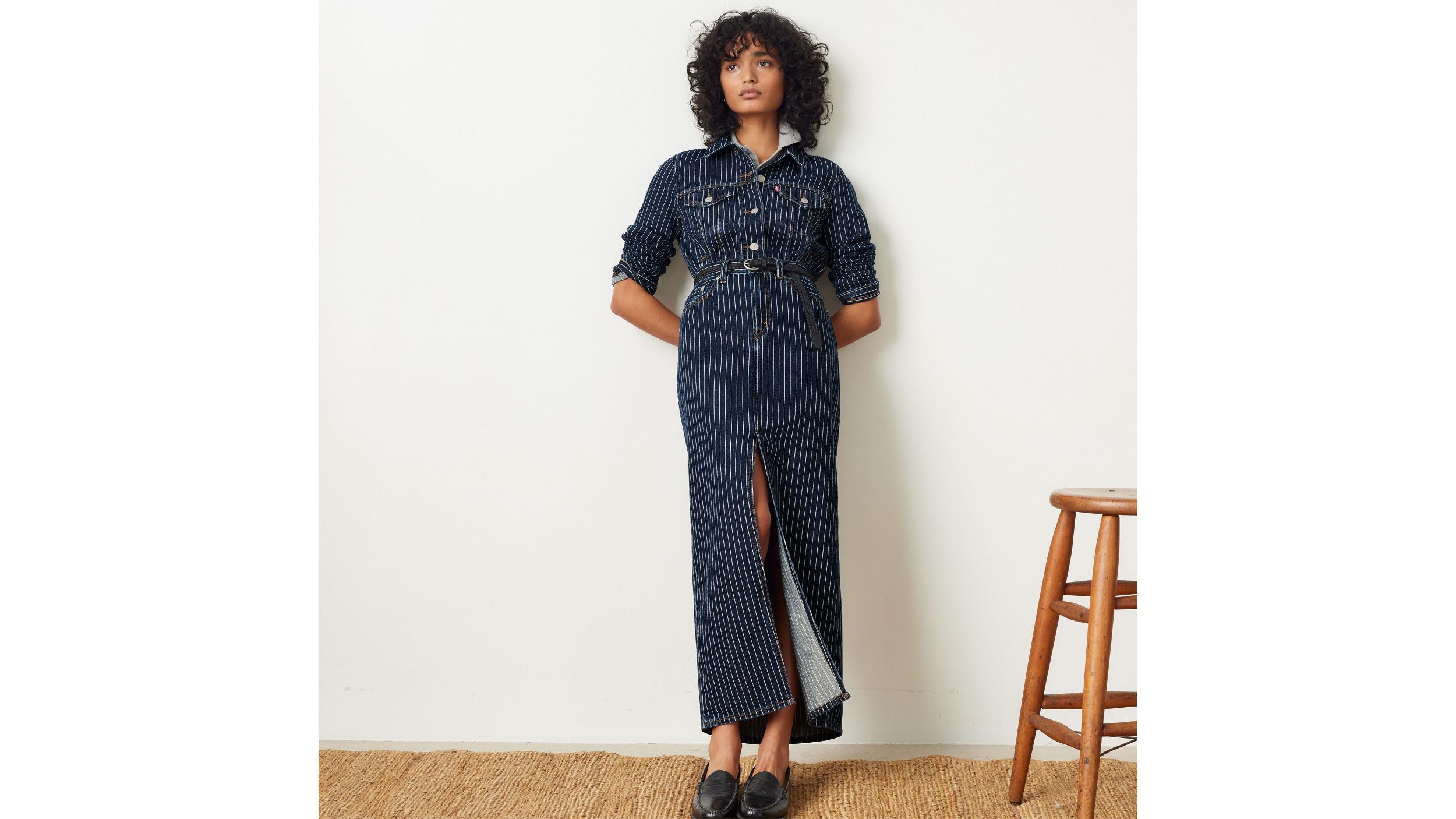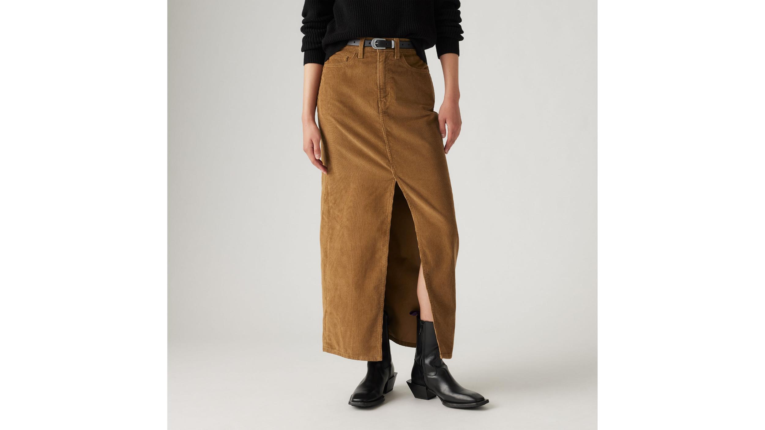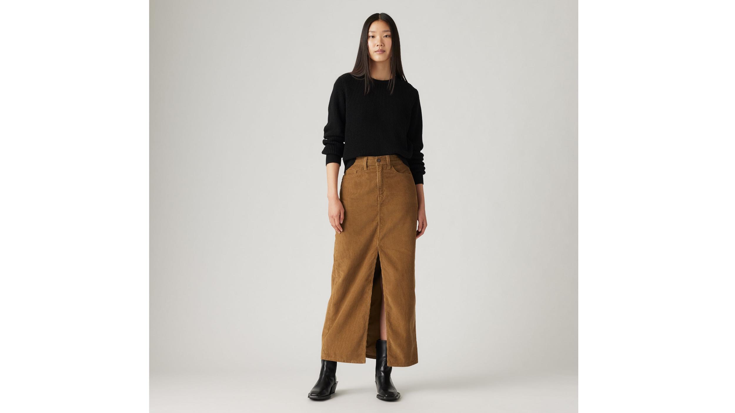 Few styles are as versatile and easy as a midi skirt. Casually cool and a little '90s, our Ankle Column Skirt features a flattering mid rise, an ankle-skimming midi length and a playful slit right down the middle.A versatile, easy midi skirtWith a flattering mid riseFinished with playful slit right down the middle