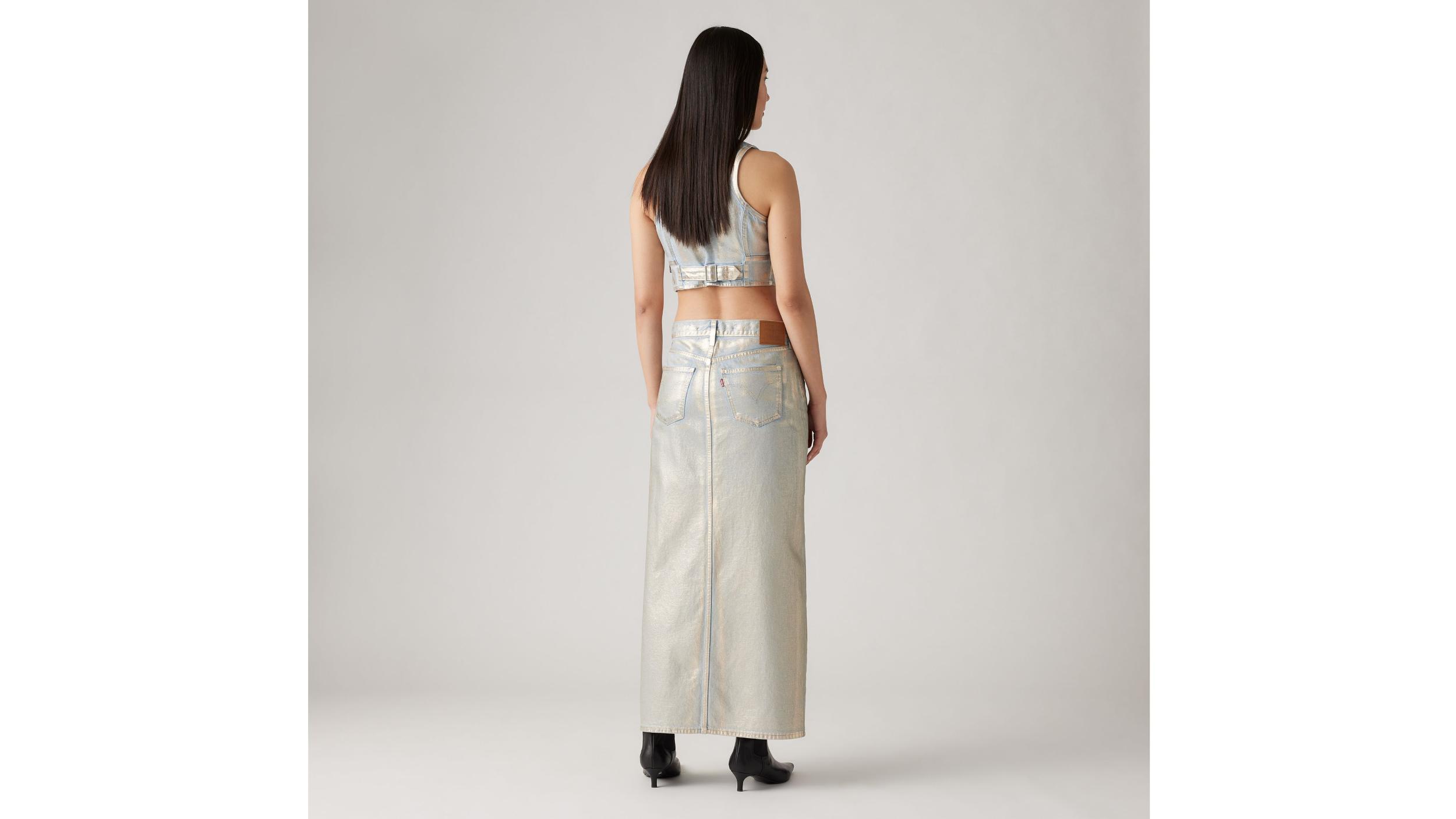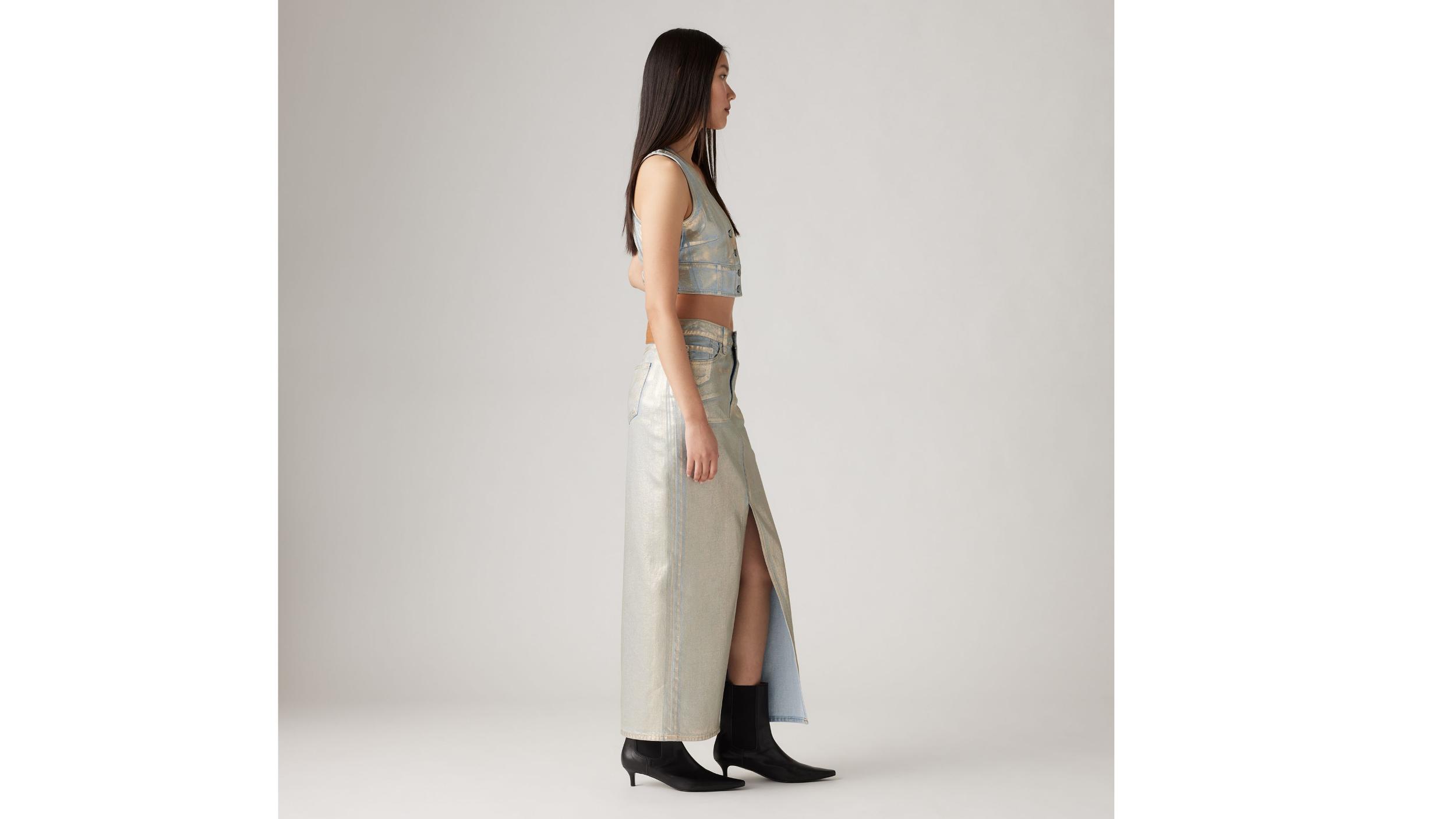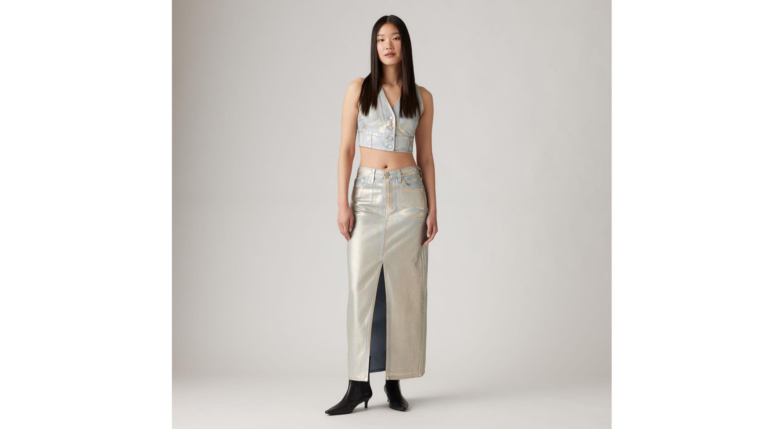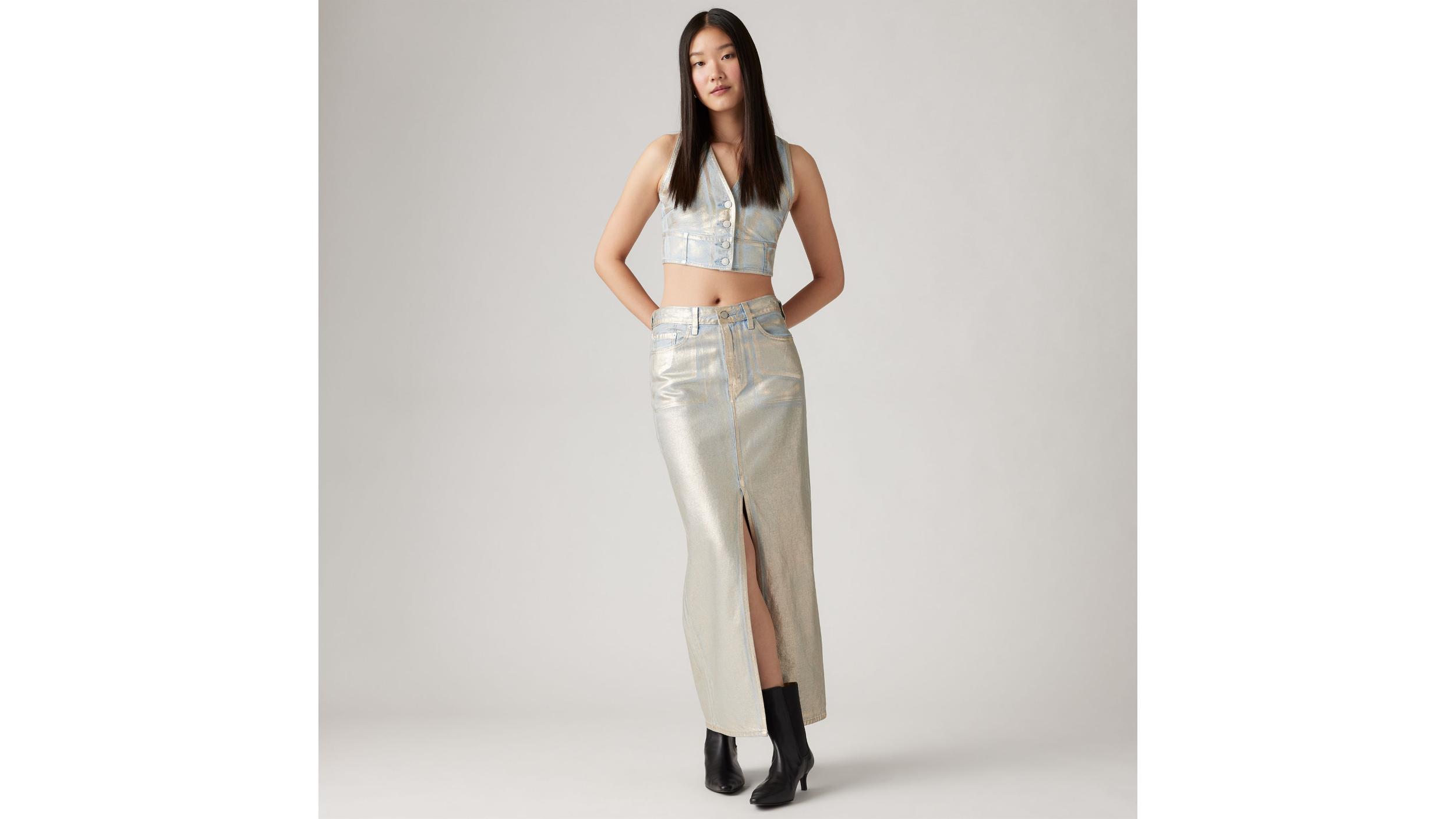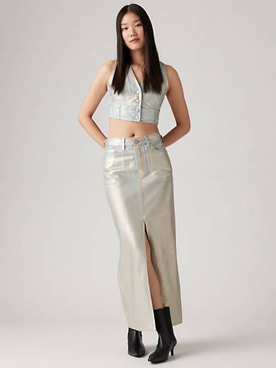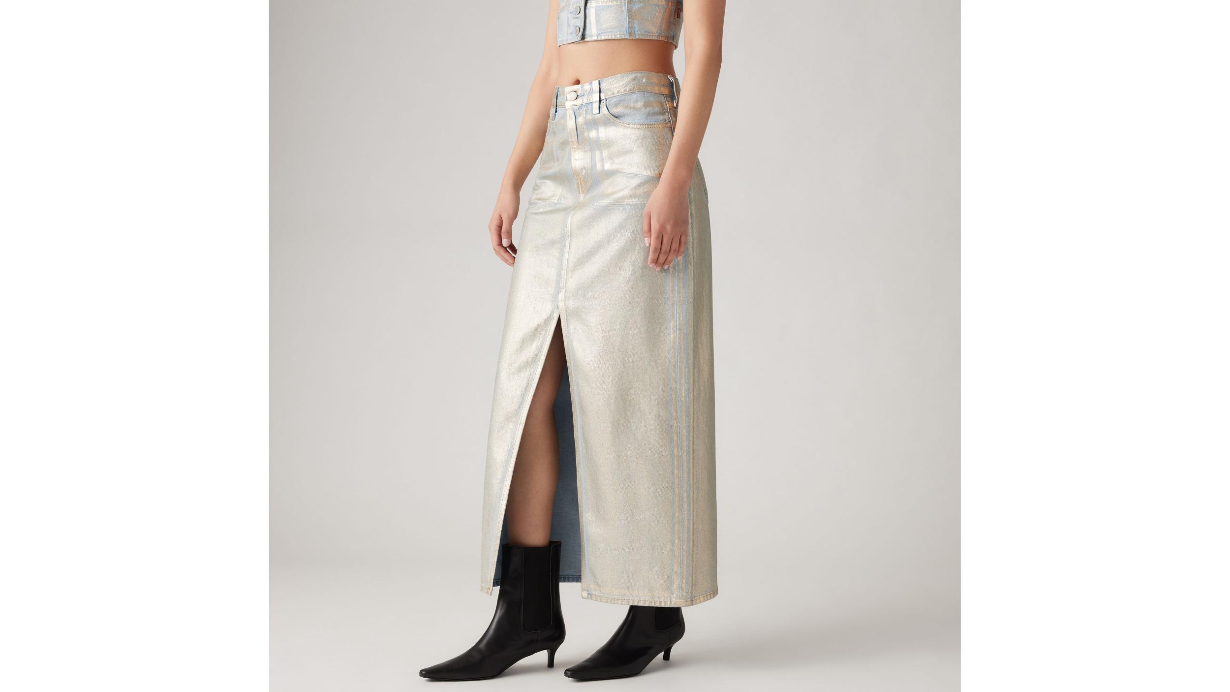 Few styles are as versatile and easy as a midi skirt. Casually cool and a little '90s, our Ankle Column Skirt features a flattering mid rise, an ankle-skimming midi length and a playful slit right down the middle.A versatile, easy midi skirtWith a flattering mid riseFinished with playful slit right down the middleDesigned with coated denim for a shimmer effect