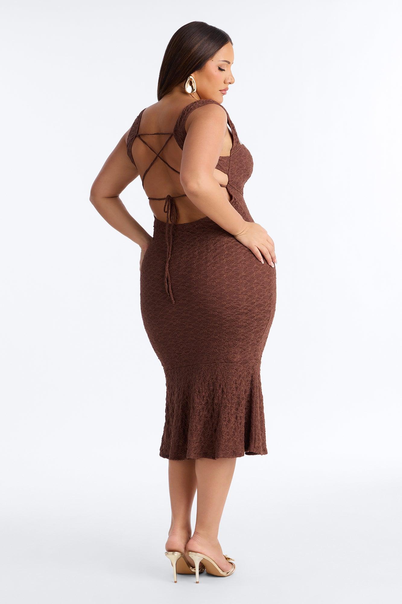 Anna Lace Midi Dress - Brown