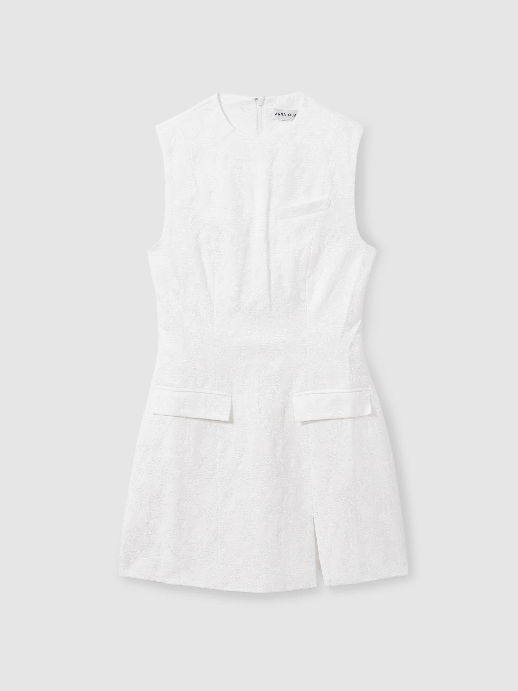The Hanna mini dress is a structured, sleeveless style crafted from a textured jacquard. Front flap pockets add a tailored feel, whilst a small split at the hem creates ease of movement. Cotton blend. Textured jacquard. High neck. Breast pocket. Flap pockets. Small slit at hem. Lined. Concealed zip to reverse with hook. Anna Quan, curated by Reiss, is a collection of women’s eveningwear borne at the intersection of minimalism and luxury. Discover these classic shapes, reimagined for a timeless style experience.