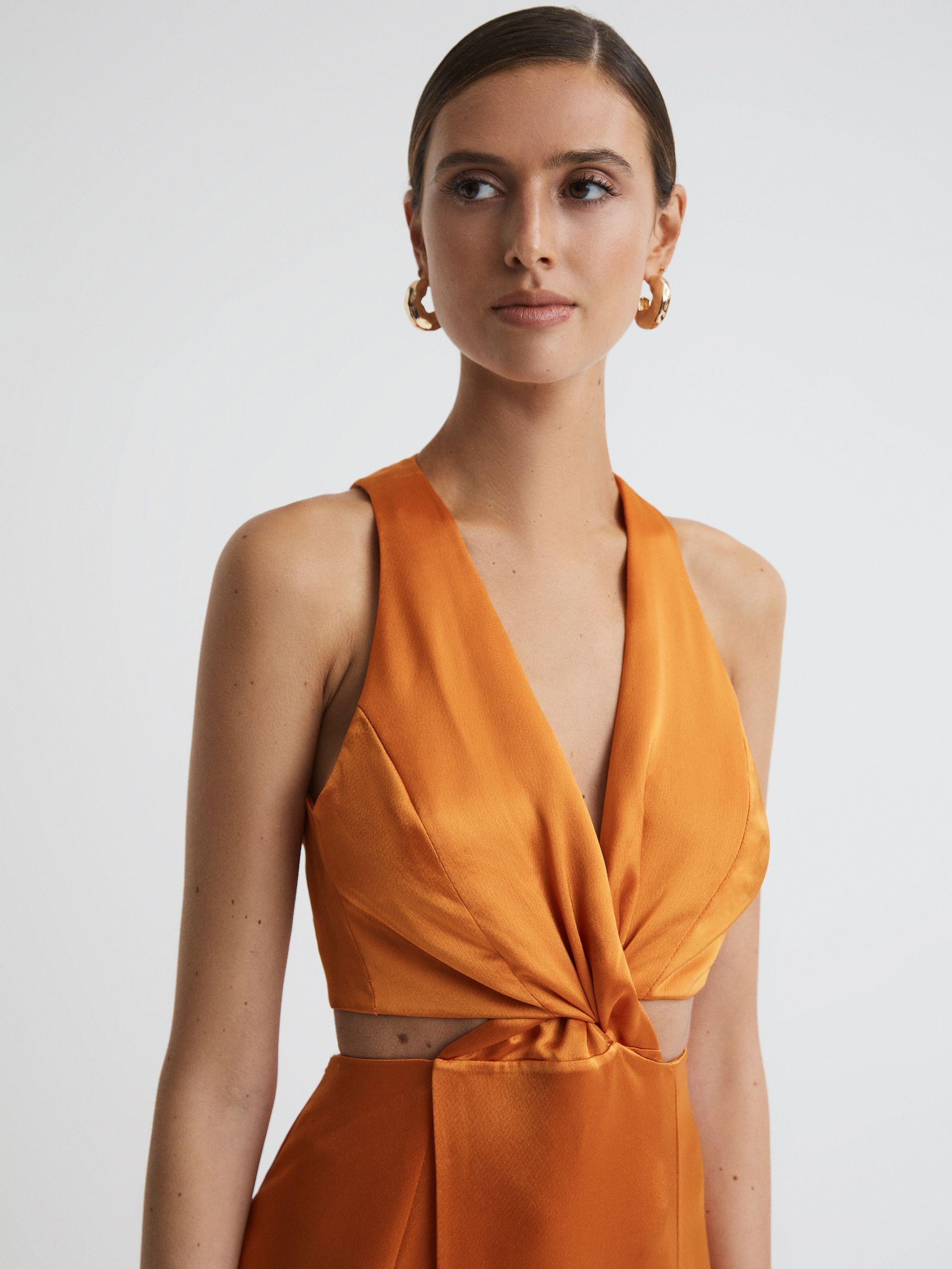 Anna Quan, curated by Reiss, is a collection of womens eveningwear borne at the intersection of minimalism and luxury. Discover these classic shapes, reimagined for a timeless style experience. Gift your occasionwear wardrobe a sultry outlook, courtesy of the Neda. This maxi dress is fashioned from satin into a fitted, wrapped design which accentuates the chest. Cut-out detailing is added to the reverse and the sides, giving the illusion of a cinched profile. Let this dress speak for itself by styling with minimal jewellery and plain heels. Satin fabrication. V-neckline. Wrap design. Cut-out detailing. Zip closure to reverse. Maxi length.
