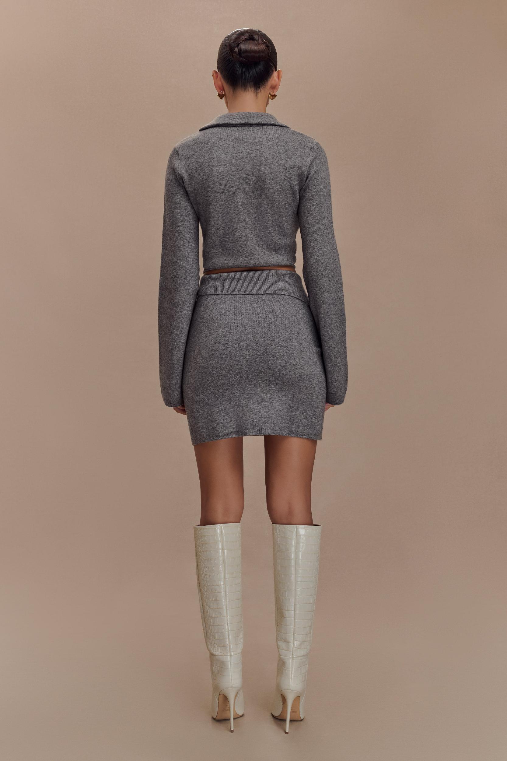 Effortlessly sleek. The ANNABELLE Knit Mini Skirt is a stylish and contemporary take on classic knitwear. Featuring an eye-catching asymmetrical waistline, this skirt adds a modern twist to your wardrobe. The fold-over waist panel and ribbed waist provide a comfortable and flattering fit, while the non-functional side buttons add a touch of detail without compromising on style. Its mini length gives a playful and chic vibe, perfect for any season. For a complete and coordinated look, pair it with the Annabelle Knit Curved Hem Cardigan.