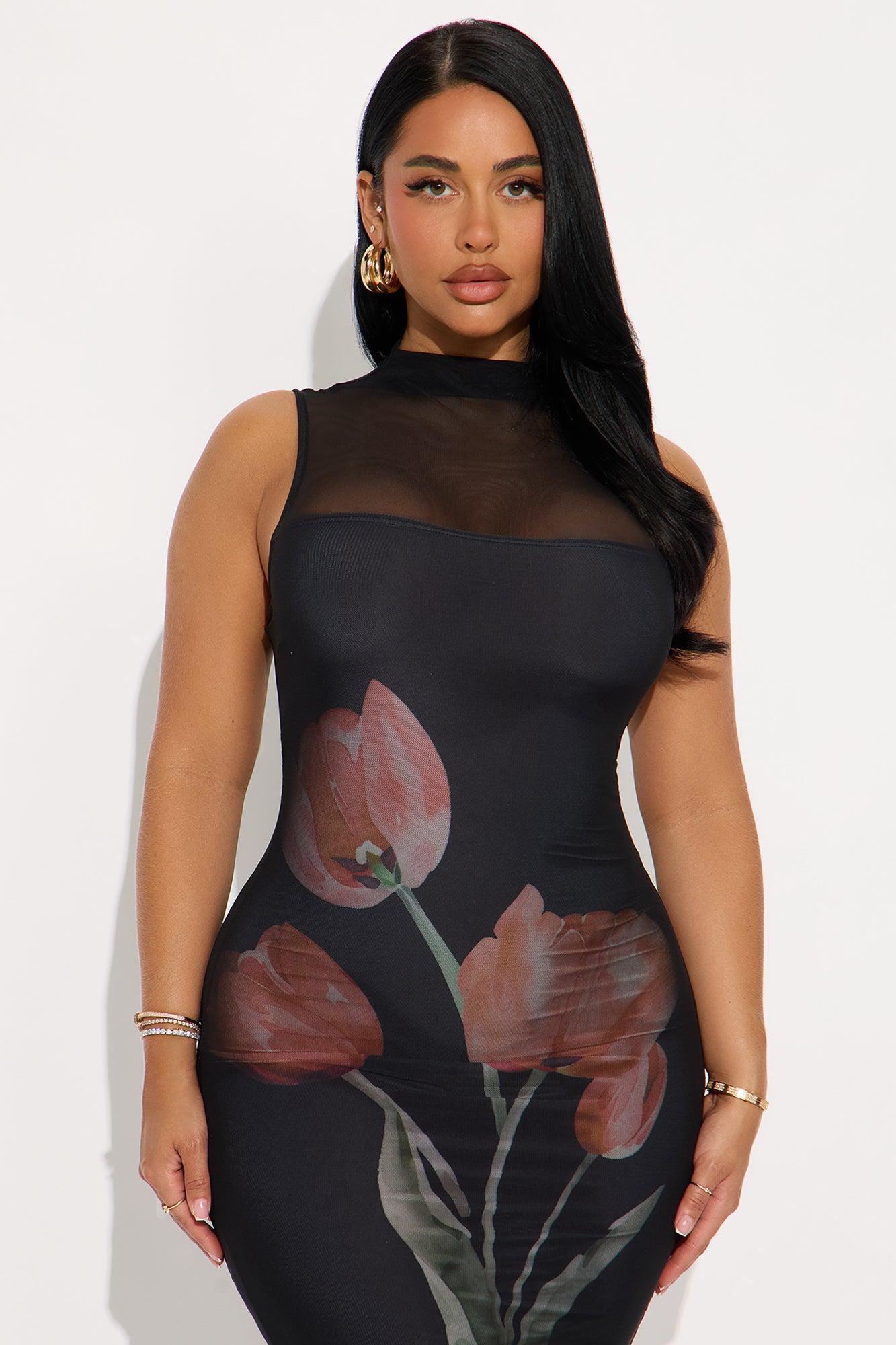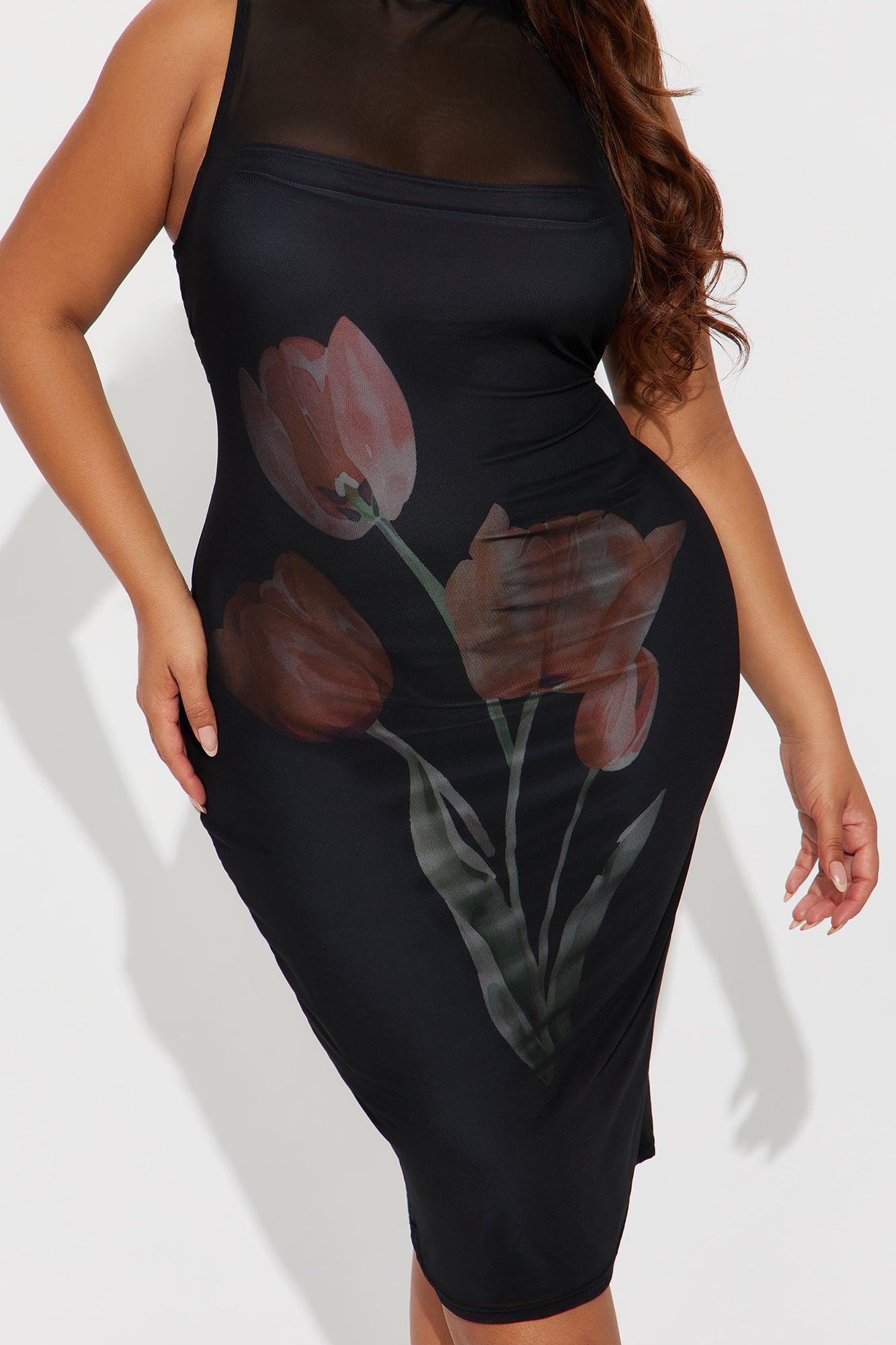 Annabeth Floral Mesh Midi Dress - Black/combo Female