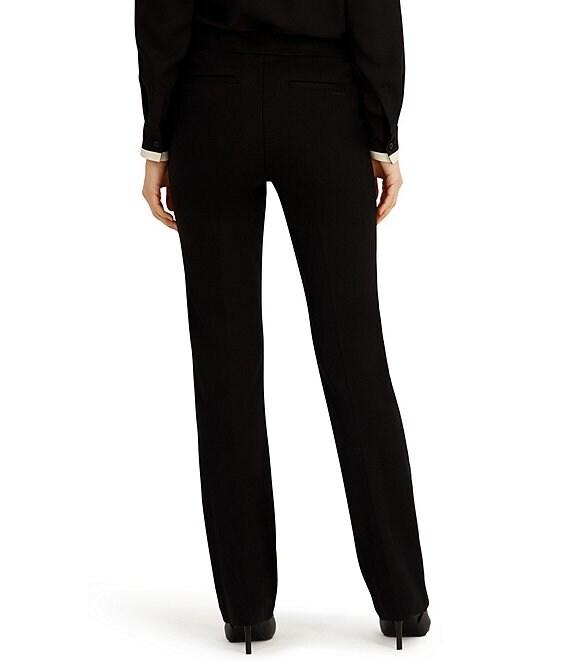 From Anne Klein, these pants feature: compression stretch knit fabrication flare leg silhouette side front pockets and welt back pockets front fly zipper and button closure approx: 32.5" inseam polyester/elastane dry clean Imported.