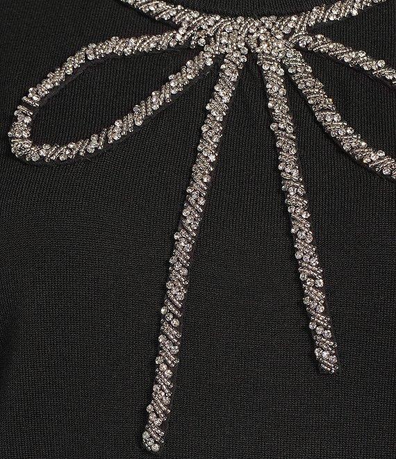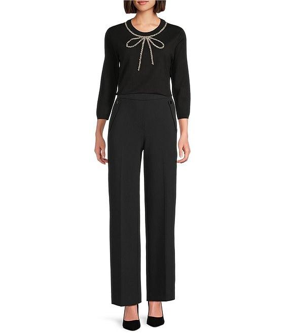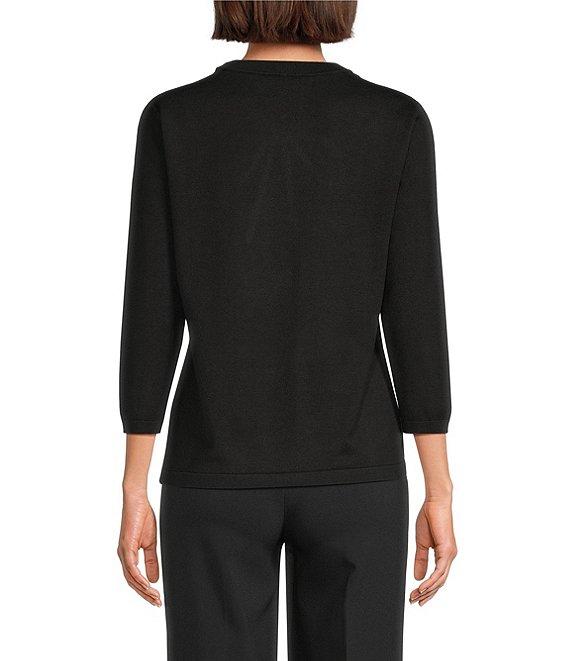 Anne Klein Crew Neck 3/4 Sleeve Embellished Bow Knit Top