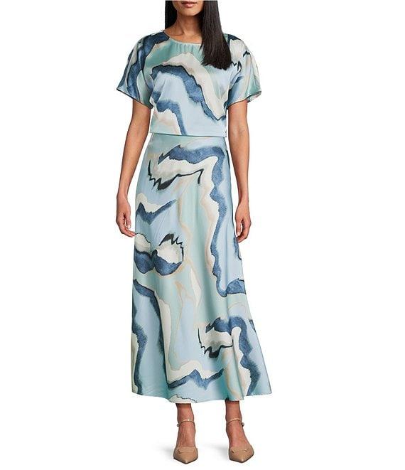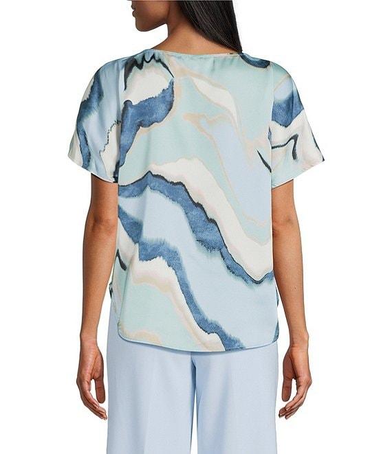 Anne Klein Flat Satin Printed Boat Neck Short Sleeve Top