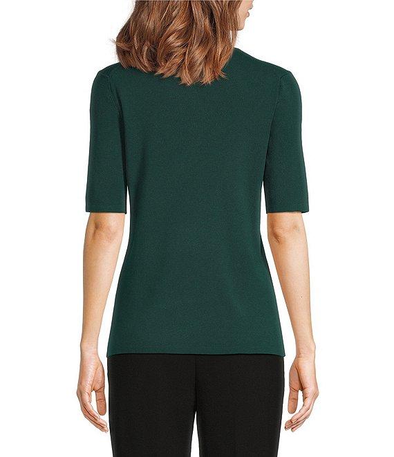 From Anne Klein, this top features: Knit fabrication Sweater silhouette Turtle neckline Half sleeves Pullover closure Rayon/nylon Hand wash cold Imported.