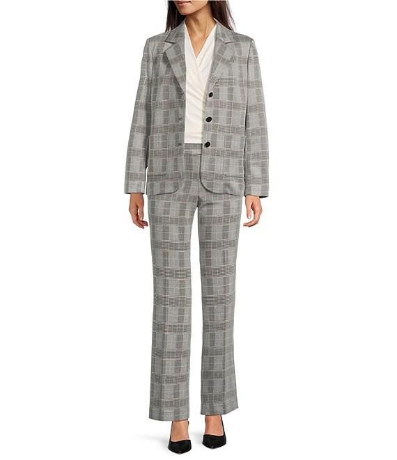 Anne Klein Plaid Notch Collar Long Sleeve Patch Pocket Button Front Blazer