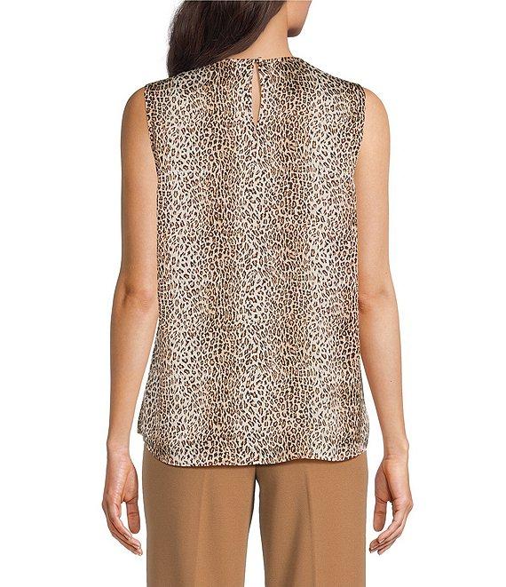 Anne Klein Pleated Neck Sleeveless Animal Print Tank