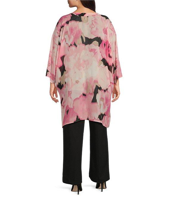From Anne Klein, this cardigan features: Floral print design Sheer fabrication Open front Elbow sleeves Oversized Side seam slits Approx. 34" length Polyester Machine wash cold/line dry Imported.