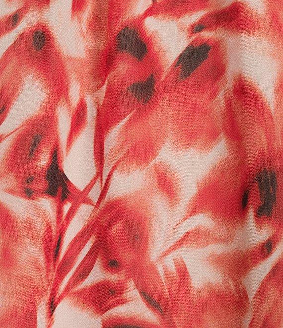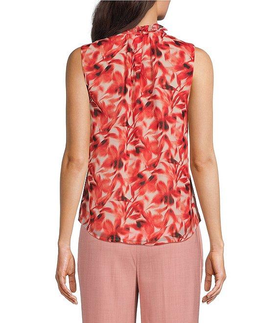 Anne Klein Printed Ruffle Mock Tie Neck Sleeveless Blouse
