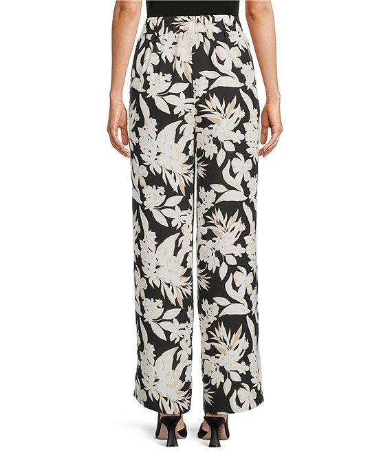 Anne Klein Pull On Floral Elastic Back Wide Leg Pants