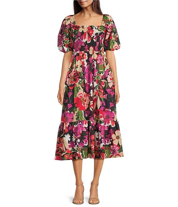 From Anne Klein, this dress features: A-line silhouette Cotton voile fabrication Floral motif Square neckline Short puff sleeves Smocked bodice Flounce hem Pull on construction Lined Approx. 42.25" length Polyester Machine wash/ drip dry or dry clean Imported.