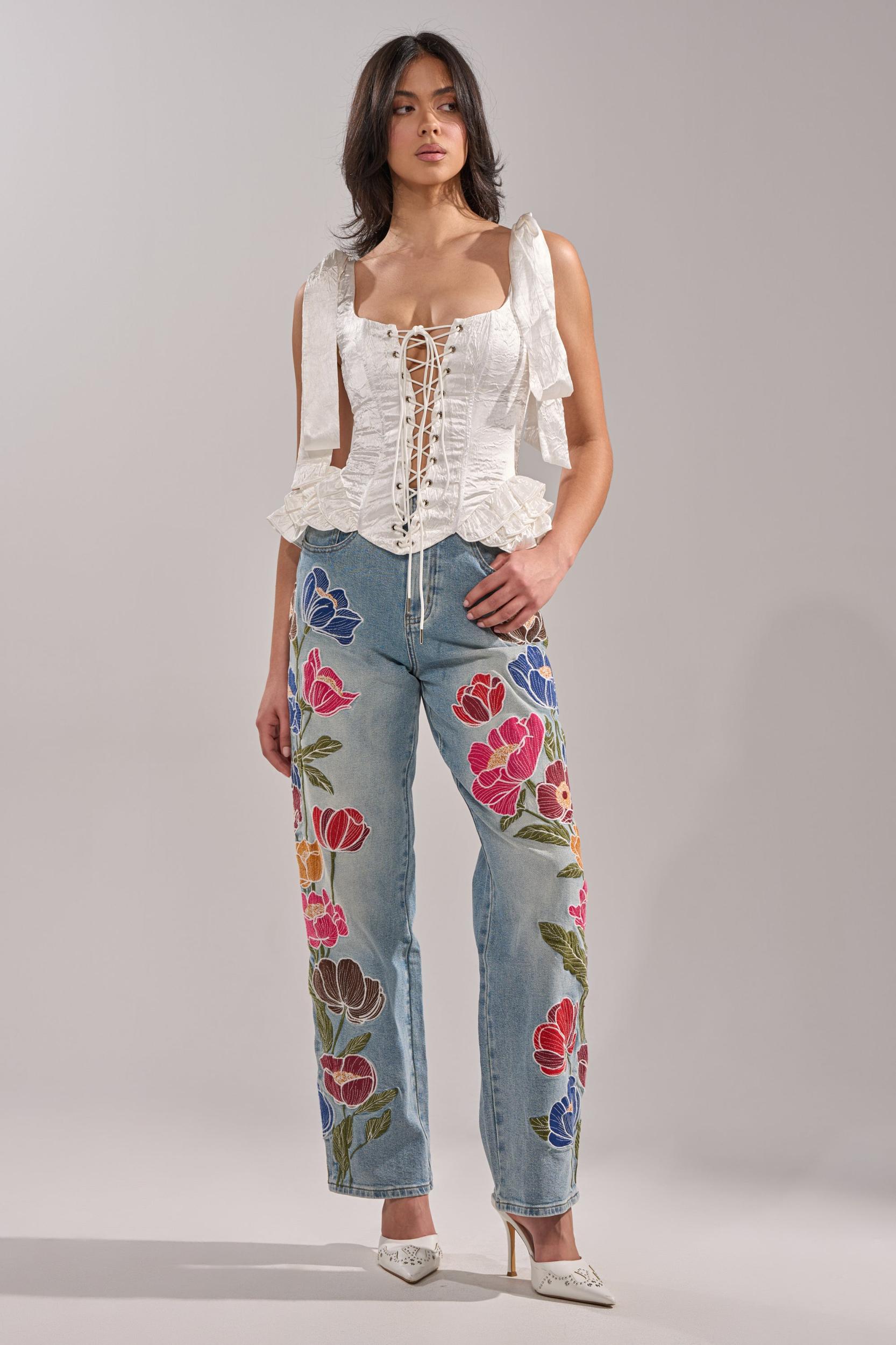 The AKIRA Label Another Life Satin Corset is crafted from a textured, buttery satin and boasts a square neckline, thick tank straps with oversized bow appliques at the shoulders, a sultry lace-up front panel that sculpts the waist, a back zipper closure, and a flared peplum silhouette with layered, tiered ruffle detailing at the hemline. Complete with a cropped fit. Pair with a maxi skirt, strappy stilettos, and pearl accessories for an ethereal finish. - Shell: 100% Polyester, Lining: 95% Polyester 5% Spandex- No Stretch- Imported (all measurements approximate from size small)- 20” Shoulder to Hem- 14” Strap Length- Model is 5’9 ½” and is wearing size smallProduct ID: 1074406 (all measurements approximate from size 1X)- 22” Shoulder to Hem- 16” Strap LengthProduct ID: 1074410