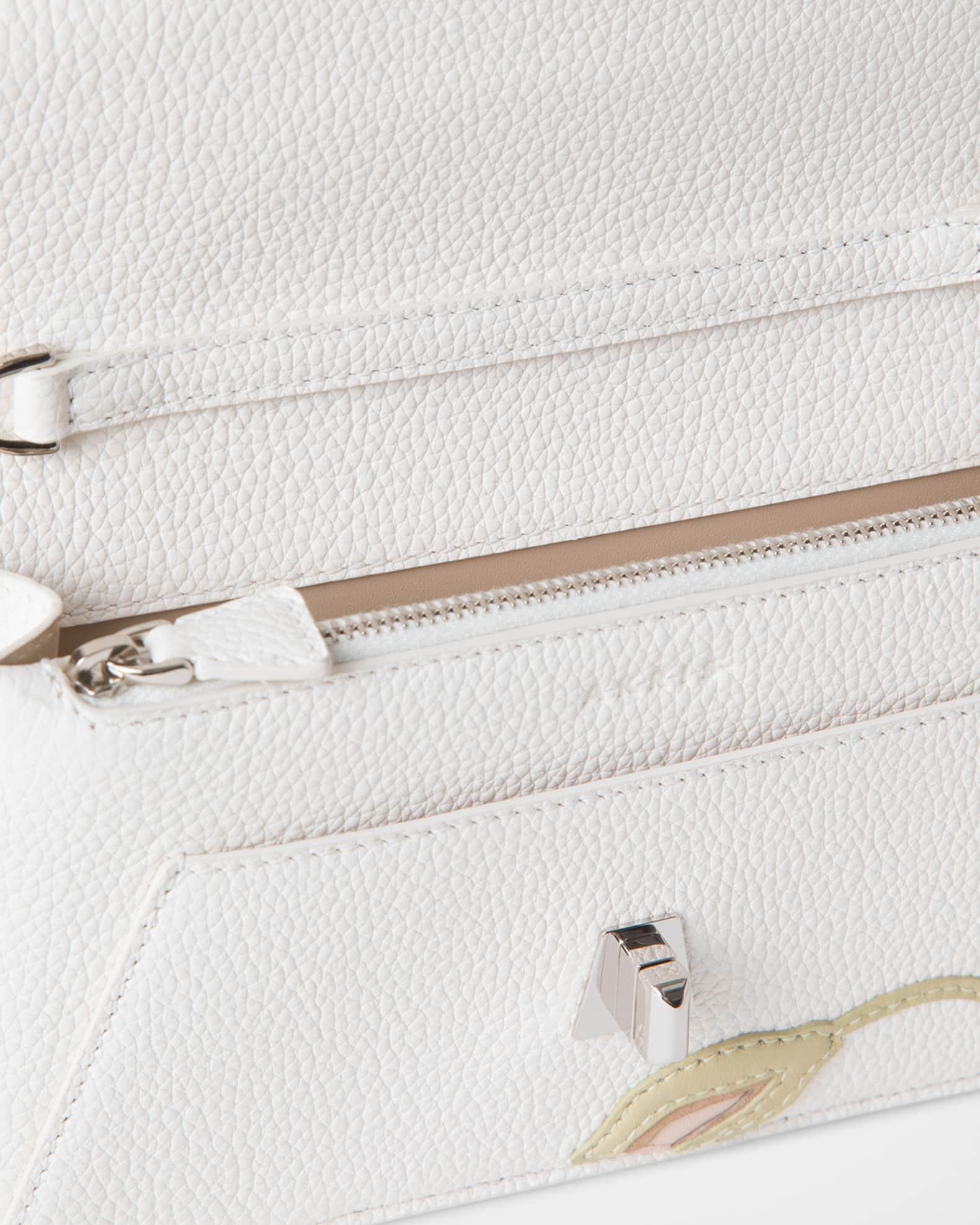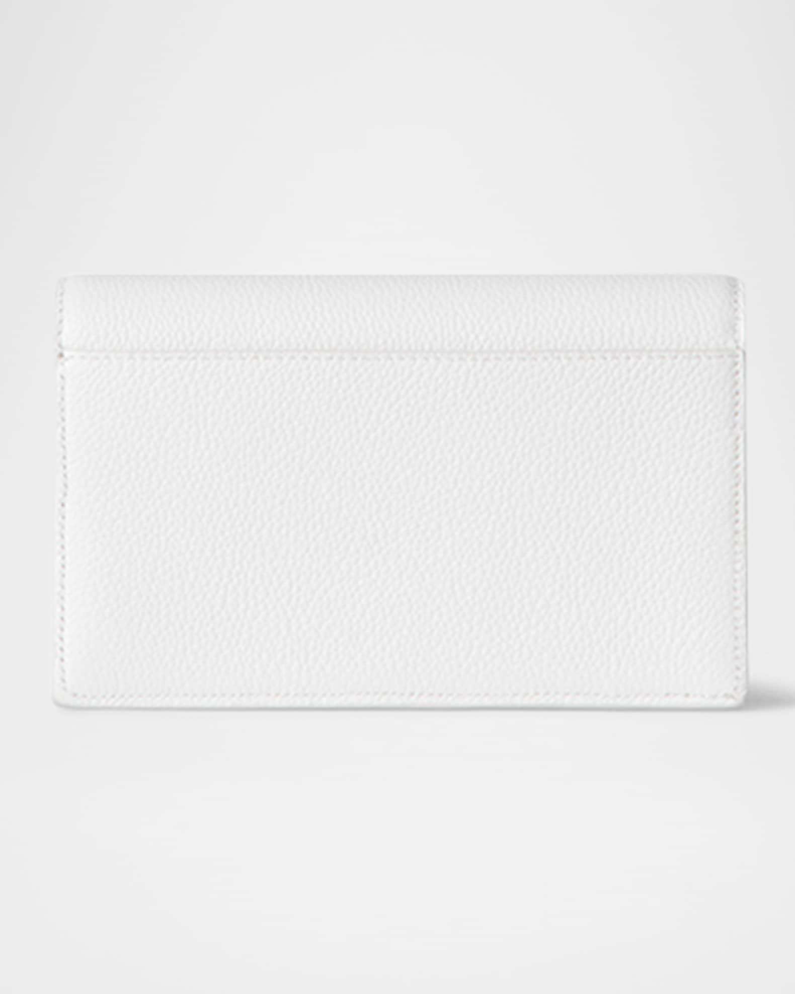 Akris "Anouk" leather shoulder bag with flower accent Detachable chain shoulder strap Can be worn as a shoulder or clutch bag Envelop flap top with turn-lock closure Interior, one zip compartment Approx. 4.5"H x 7.4"W x 1.5"D Spot clean Made in Romania