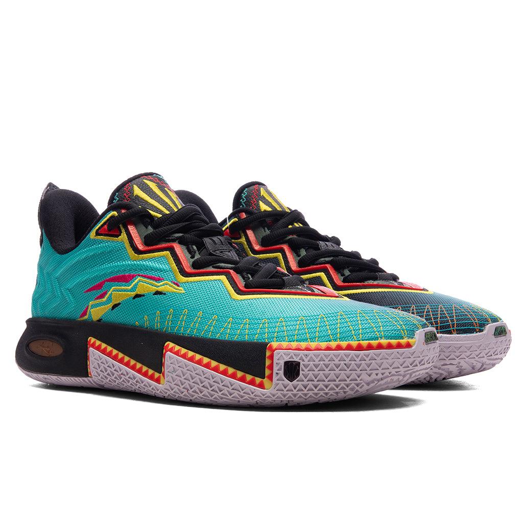 The ANTA x Kyrie Irving Kai 2 'Retro 90' is dedicated to the bold spirit of the 1990s unapologetic flair and fashion culture's shifting. Vivid green, black, and electric blue tones echo vintage sports aesthetics surrounds the high-strength upper construction, offering durability and support. Graphic detailing and angular paneling nod to retro techwear influences and Kyrie’s unpredictable on-court movement. The anti-slip rubber outsole provides grip for traction, complemented by colorful accents symbolizing the eclectic design language of the '90s. The arrow TPU frame enhances lateral stability, and the Full-palm Nitrogen midsole delivers plush cushioning and explosive energy return with every step. DUE TO THE NATURE OF THIS PRODUCT, ALL SALES ARE FINAL. THIS PRODUCT DOES NOT QUALIFY FOR DISCOUNTS OR SPECIAL PROMOTIONS. Textile upper Intricate embroidery TPU frame Lace closure Full-palm Nitrogen technology midsole Anti-slip rubber outsole All sizes are listed in US Men's sizing unless stated otherwise Style No: 8125C1111S-2
