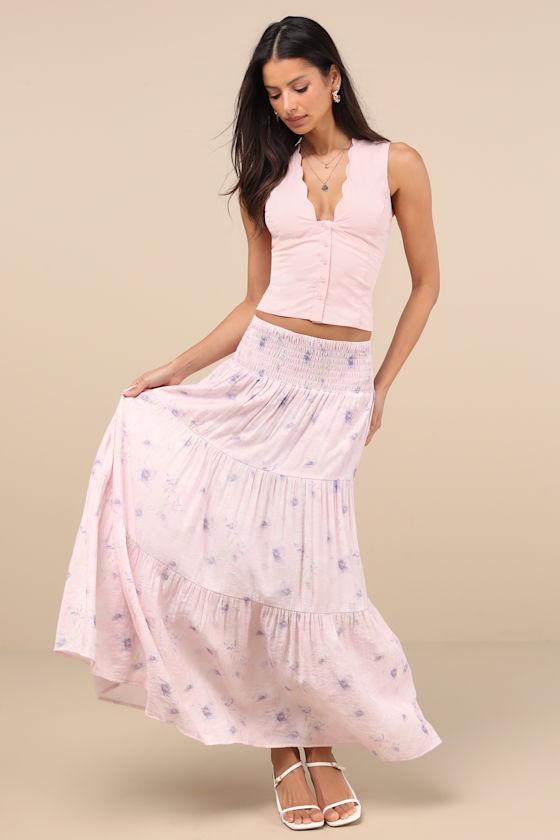 Effortlessly blend the lines between comfort and cuteness every time you style this lightweight floral skirt that falls from a banded waist with trendy smocking. The flowy A-line silhouette boasts a tiered design that lends soft volume to the Boho-sweet look.