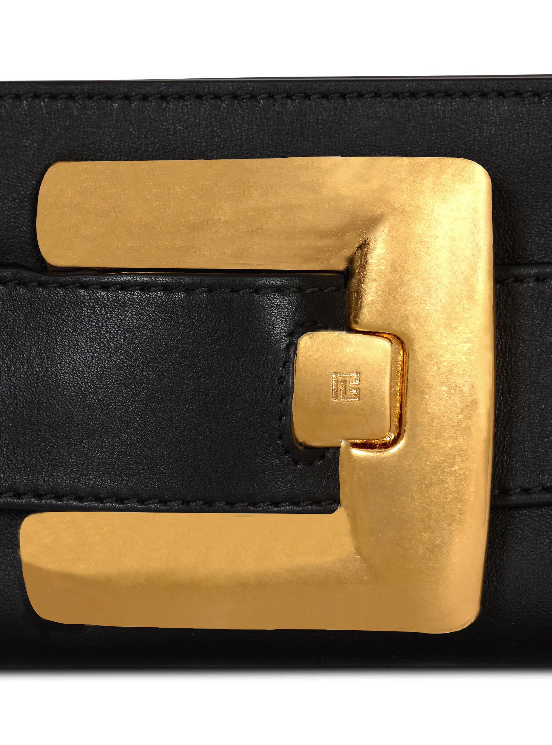 Calfskin leather clutchBelted styleFor carrying in the handLeather belt and belt loopsMetal PB-engraved buckleMetal PB logo on the backMagnetic fasteningEmbossed leather inside card pocketGold hardwareDimensions: 2.5 x 24.5 x 11 cmMain material: 100% calfskinMade in ItalyItem: FN1OC262LVGX