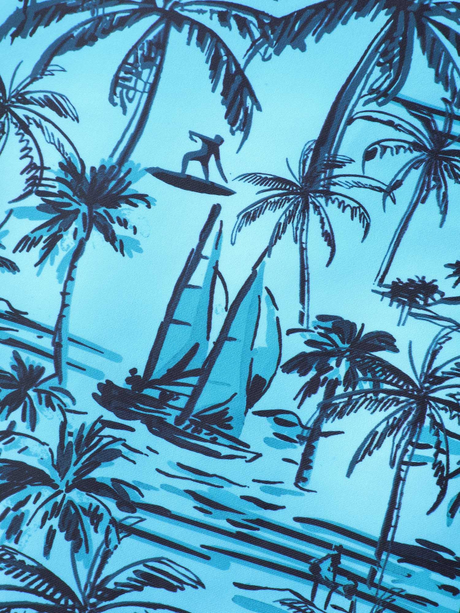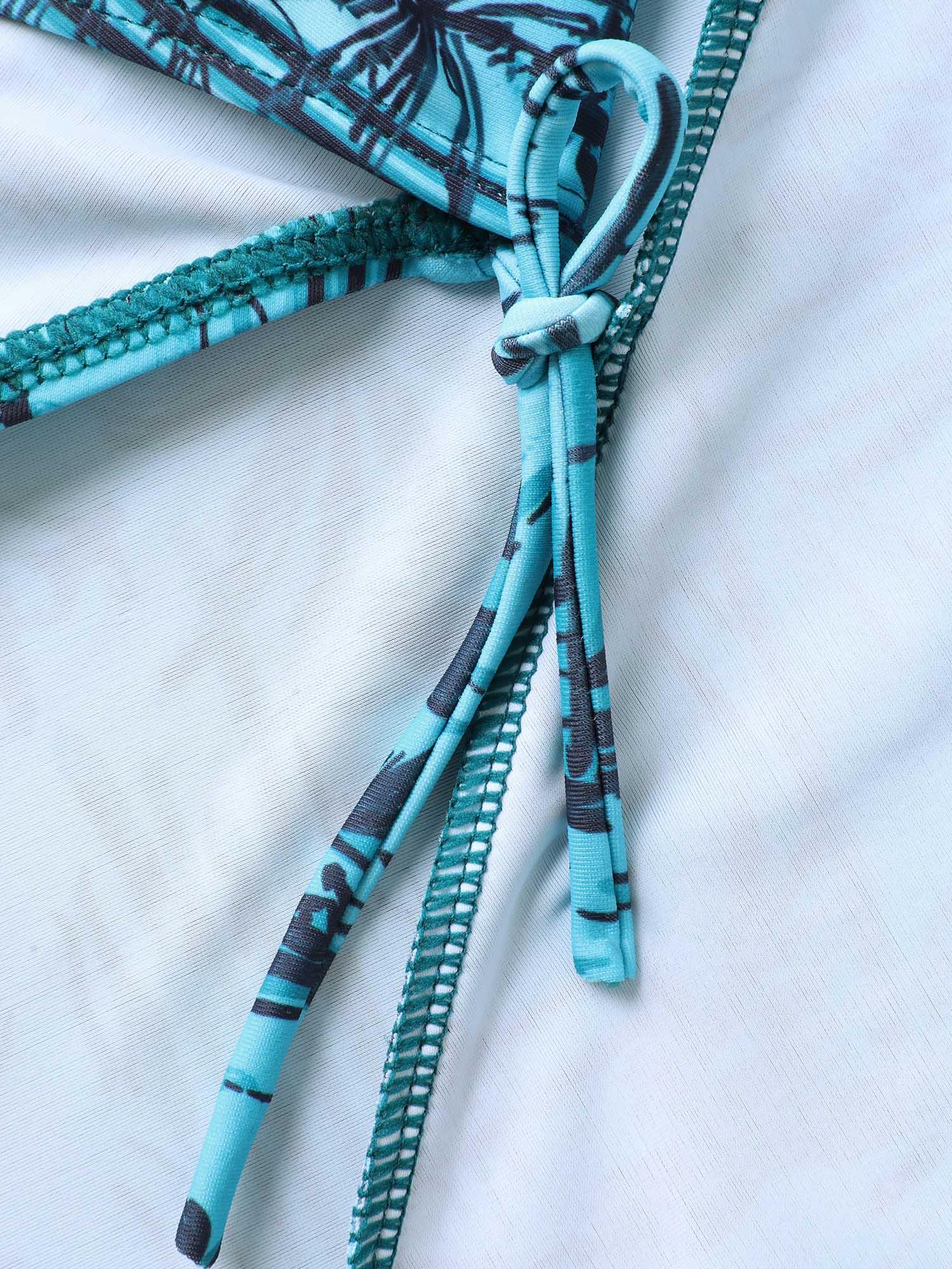 Plus Size Anti Float Tie Tropical Print Swim Dress Women's Swimwear Teal Resort Bodycon Overlap Collar High stretch Curve Swim Dresses BloomChic 18-20/2X