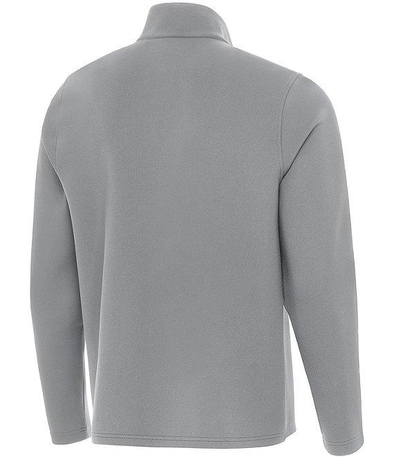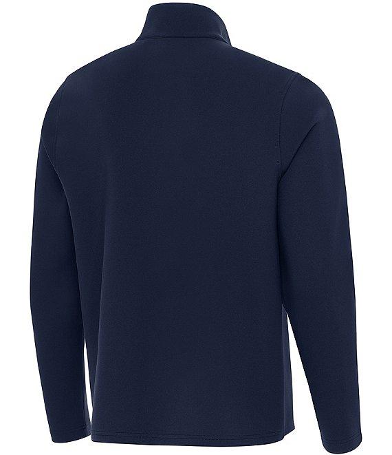 From Antigua, this pullover features: Mockneck Long sleeves Quarter-zip closure Antigua 'A' on right cuff Right side zip chest pocket Championship logo on left side of chest Stretch fabric Polyester/spandex Machine wash/tumble dry Imported