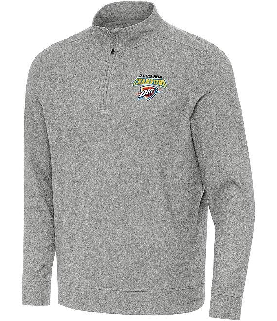 From Antigua, this pullover features: Mock neck Long sleeves Antigua 'A' on right cuff Quarter-zip closure 8-inch zipper with covered placket Championship logo on left side of chest Stretch, buffed fleece fabric Polyester/spandex Machine wash/tumble dry Imported.