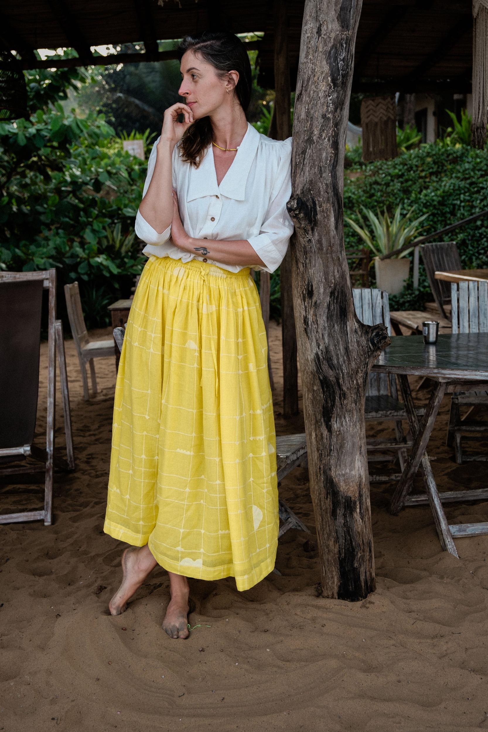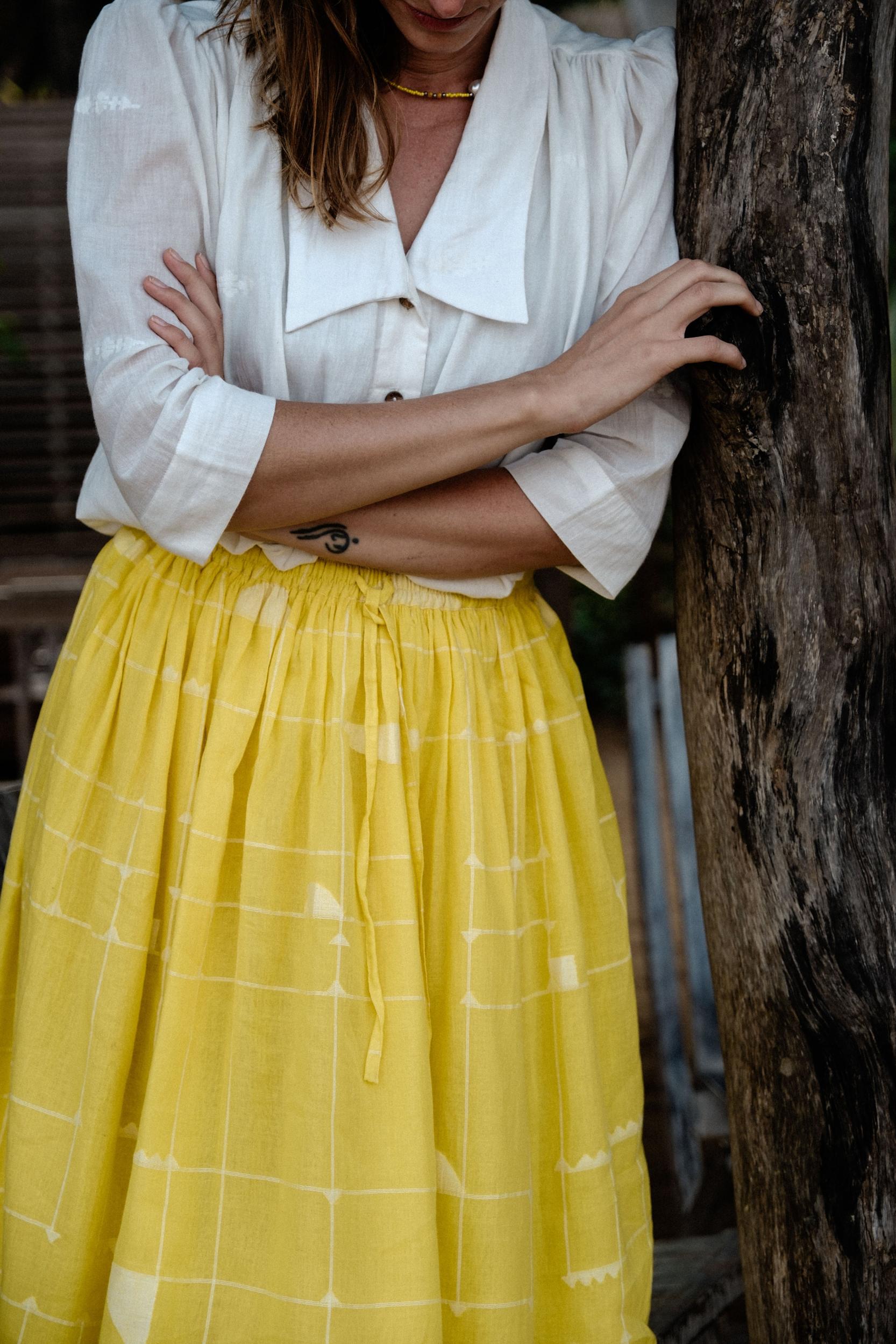 This dress is made in collaboration between World of Crow and Erica Kim. This vintage blouse has the perfect vintage vibe for those vintage lovers out there. This buttoned shirt, is made with cool Jamdani fabric. It can be worn anywhere be it your office, a brunch date, a movie show or a day at the beach.