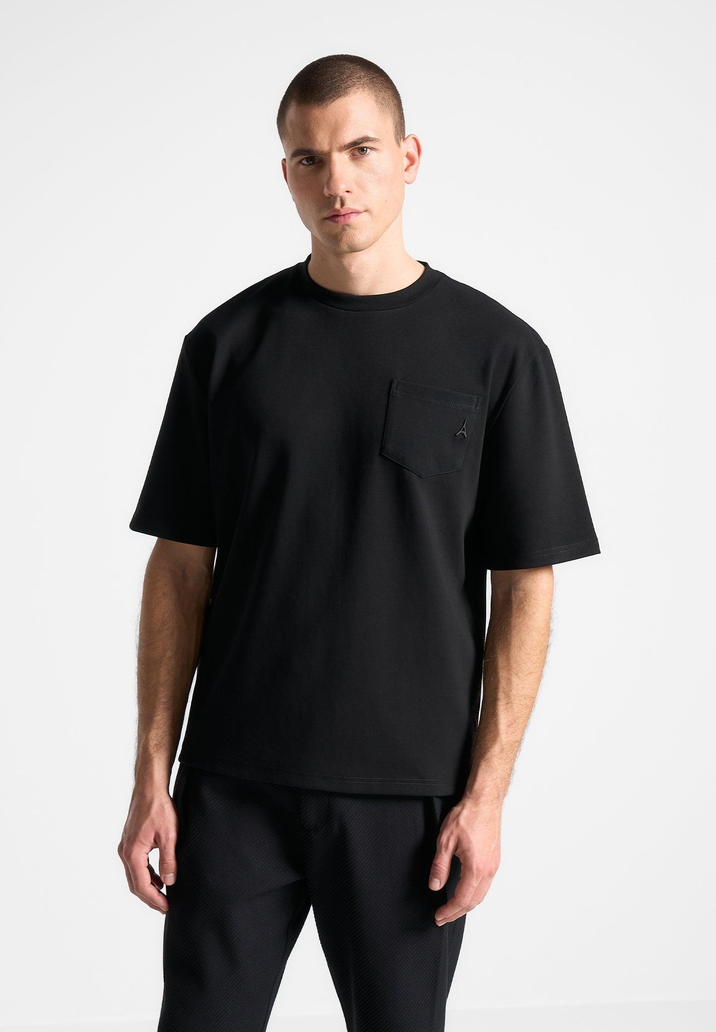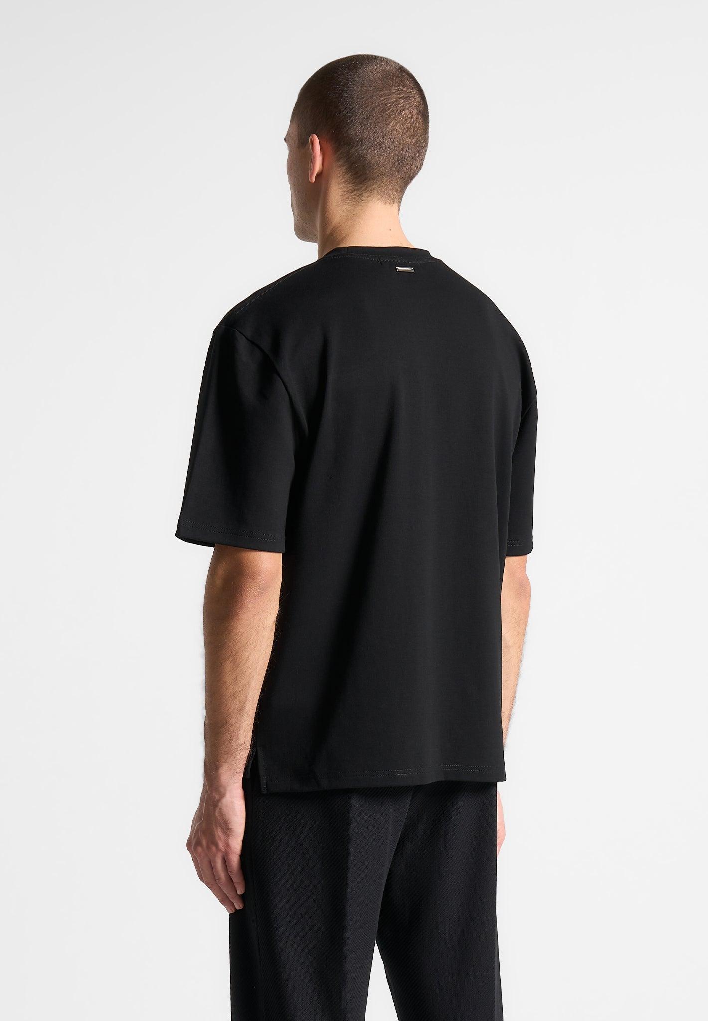 Upgrade your wardrobe with the Éternel Oversized Fit Cotton T-Shirt. This classic design combines comfort and style with its relaxed fit. A versatile and timeless piece, it's a wardrobe staple that will elevate any outfit. Oversized T-Shirt with Pocket Detail Oversized Fit Pocket Detail Feature to Front Split Hem Detail Manière De Voir Silver Plaque to Back Neck Fabric: 95% Cotton, 5% Elastane Model is 6'0", 40" Chest, 30" Waist and Wears Size Medium Based On Size M - Front Length 73cm/29in, Chest 108cm/42.51in, Sleeve Length 28cm/11.2 in Stretch Factor - 2/3