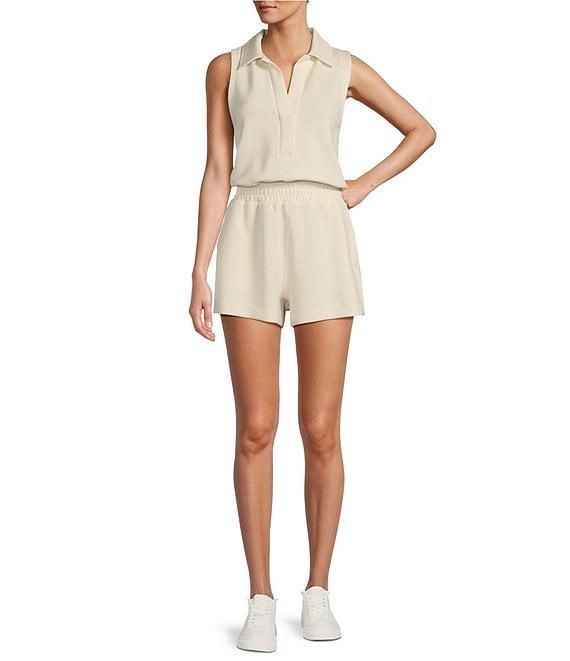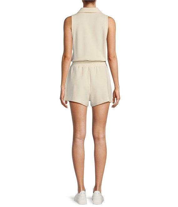From Antonio Melani Active, this romper features: Plaited interlock fabrication Collar neckline Sleeveless 2 front pockets Approx. 11.25" length; 3" inseam Polyester/Lyocell/Elastane Machine wash cold Imported. Dillard's Exclusive.