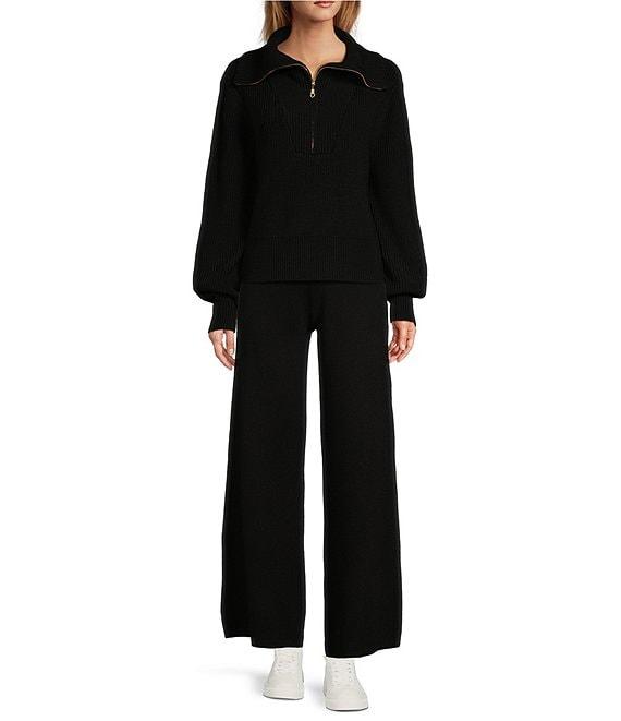 From Antonio Melani Active, this pullover features: Wool Blend Sweater Knit Fabrication Sweater Silhouette Oversized Platter Collar Long Sleeves Deep V-Shape Front Seam Slightly Dropped Shoulders Tall Ribbed Cuffs Relaxed Fit Slightly Cropped Straight Ribbed Banded Hemline Quarter Zip Front Closure Pullover Construction Approx. 20" in Length Polyester/Nylon/Acrylic/Wool Machine wash on cool gentle cycle, wash with similar fabrications and colors, promptly remove from wash, lay flat to dry and reshape. Imported.