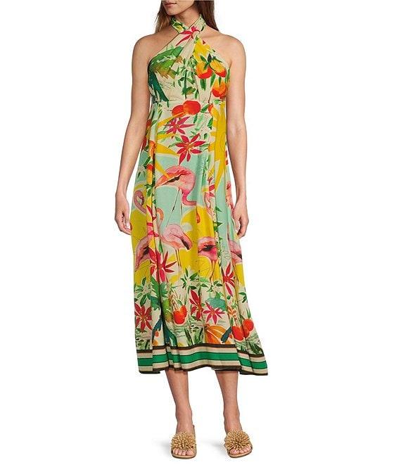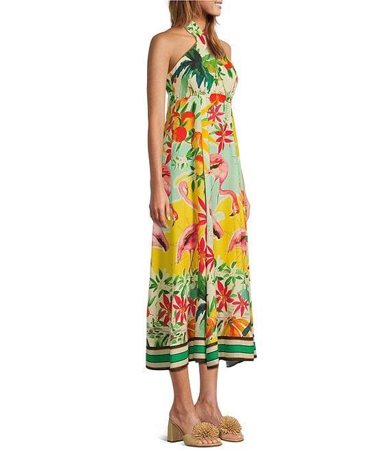 Antonio Melani Alanna Tropical Linen Blend Halter A-Line Dress