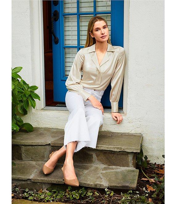 From Antonio Melani, these pants feature: Stretch twill fabrication High rise waistline Belted loops for styling Pull on construction Front button with zipper closure 5-pocket silhouette Wide leg silhouette Modern fit Straight raw hemline Cropped above the ankle length Approx. 27" inseam Cotton/polyester/lyocell Machine wash/do not tumble dry Imported.