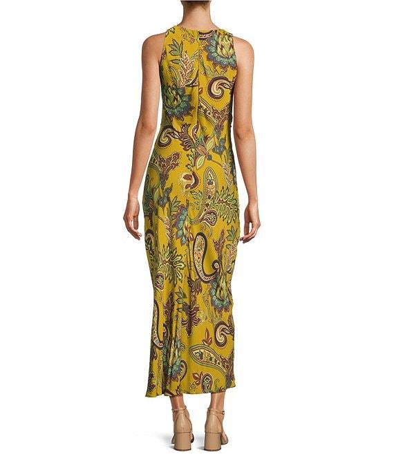 From Antonio Melani, this dress features: Printed matte satin fabrication Blouson silhouette Mock cowl neckline Sleeveless Ruching Unlined Zipper back closure Approx. 55" length Polyester Dry clean Imported.