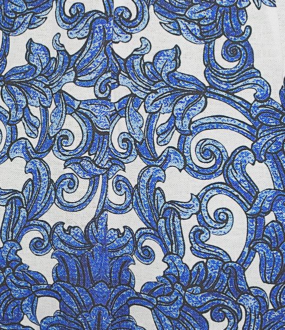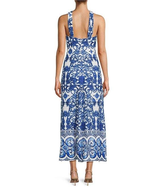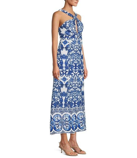 Antonio Melani Bronwyn Blue Tile Print Linen Blend Halter Neck A-Line Maxi Dress