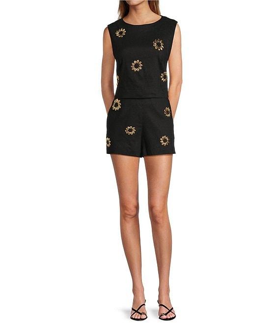 Antonio Melani Coordinating Clena Linen Blend Shell Embellished Flat Front Shorts