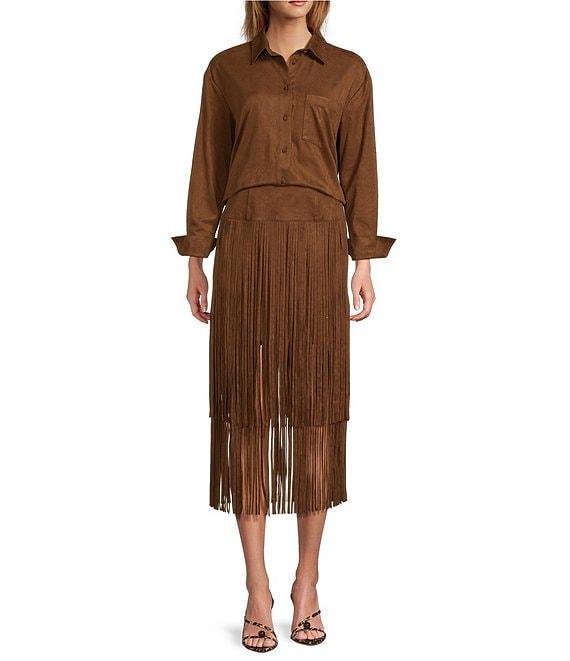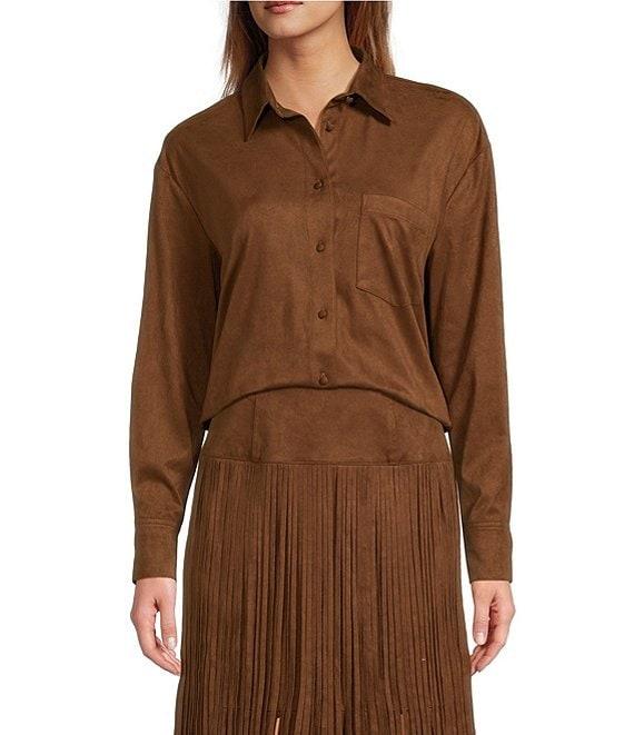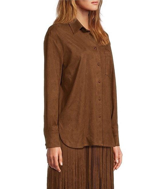 Antonio Melani Coordinating Paulalexis Faux Suede Long Sleeve Collared Button Front Shirt