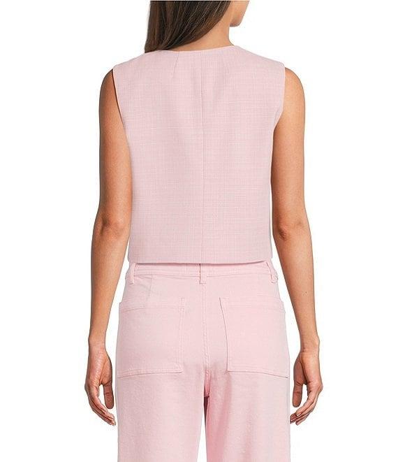 From Antonio Melani, this vest features: Novelty suiting fabrication Sleeveless Round neckline Lined Button front closure Pockets Approx. 17.5" length Polyester/viscose/elastane Dry clean Imported.
