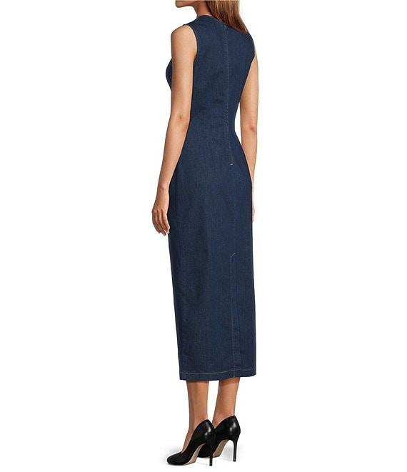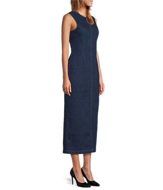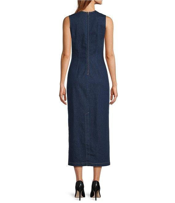 Antonio Melani Elvira Stretch Denim Round Neck Sleeveless Sheath Midi Dress