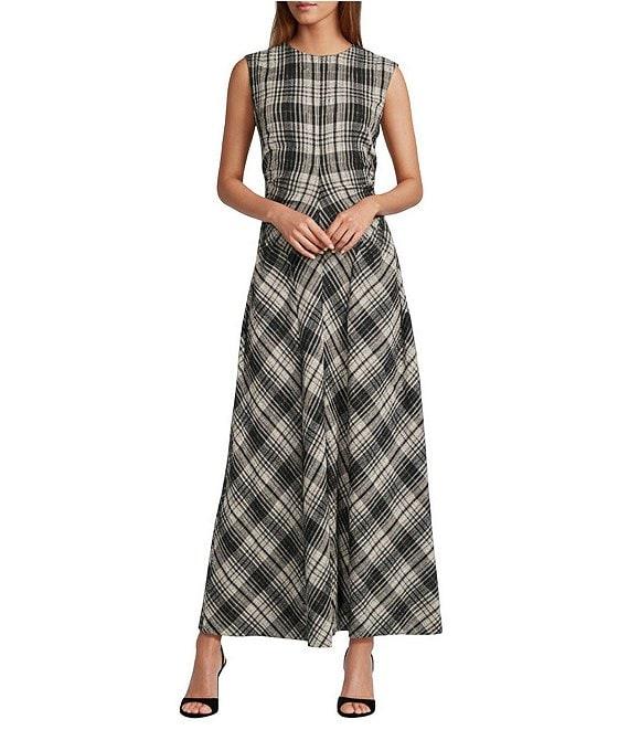 Antonio Melani Erica Sleeveless Boat Neck Plaid Fit and Flare Maxi Dress