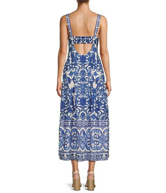 Antonio Melani Gabriela Printed Cotton Poplin Sweetheart Neckline Sleeveless A-line Midi Dress
