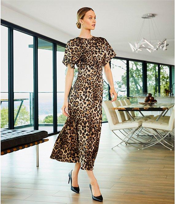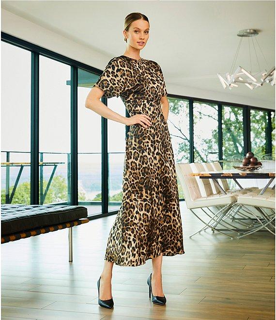 Antonio Melani Gabriella Satin Leopard Print Crew Neck Short Sleeve Maxi Dress