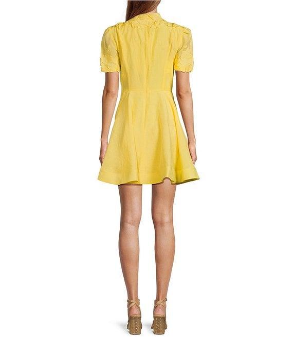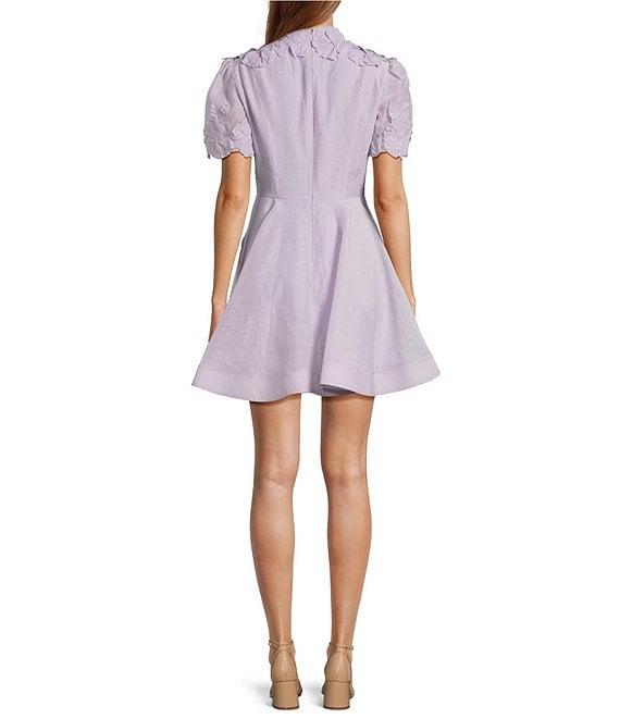 Antonio Melani Iris Linen Floral Mockneck Short Sleeve Dress