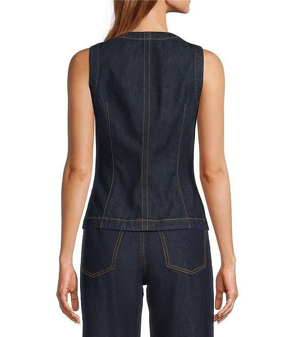Antonio Melani Katie Denim Round Neck Sleeveless Button Front Vest