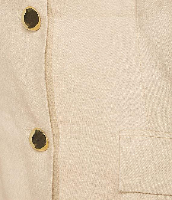 From Antonio Melani, this vest features: Stretch linen blend fabrication Square Neckline Sleeveless 2 Front Flap Pockets 3 Button Front Closure Approx. 26.25" length Linen Dry Clean Imported.