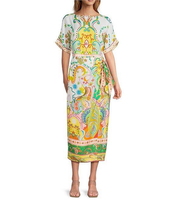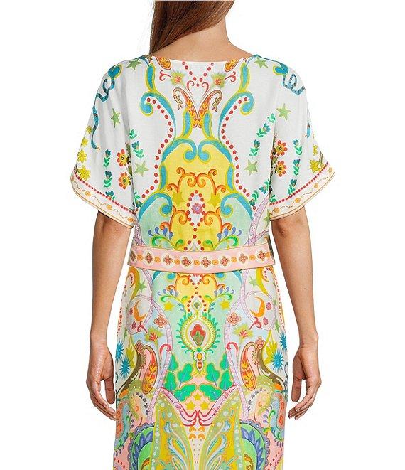 Antonio Melani Liesl Printed Linen Boat Neckline Short Sleeve Coordinating Blouse