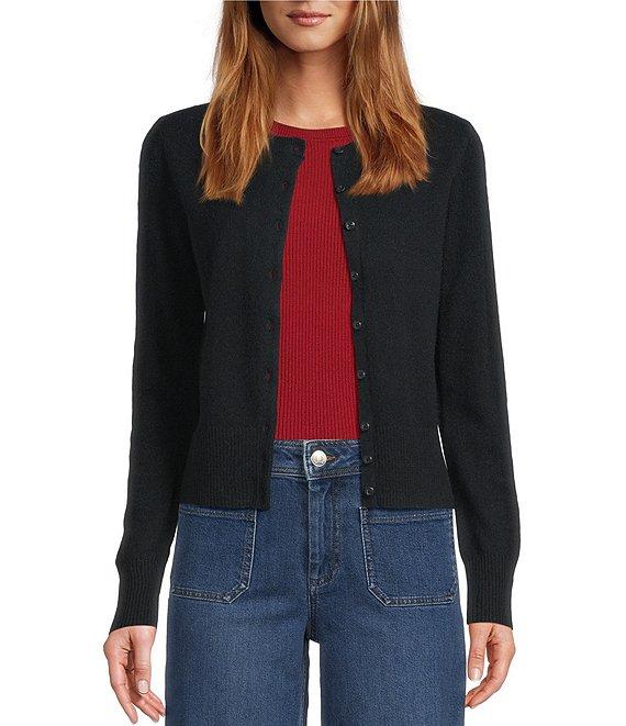 Antonio Melani Lindsay Crew Neckline Long Sleeve Button Front Cashmere Cardigan