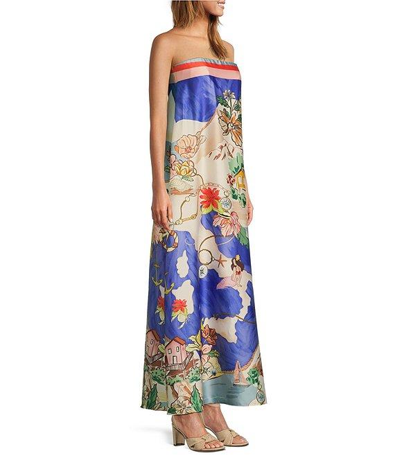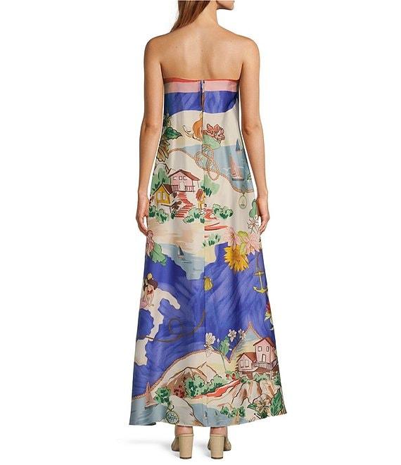 Antonio Melani Lucia Ocean Print Satin Strapless Maxi Dress