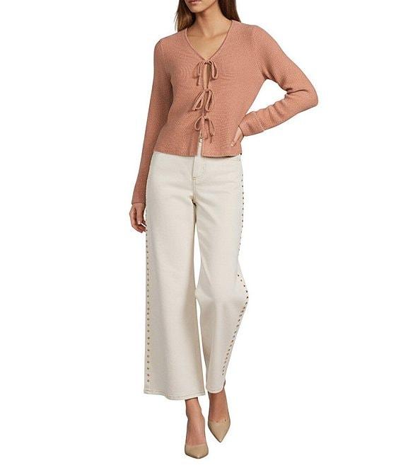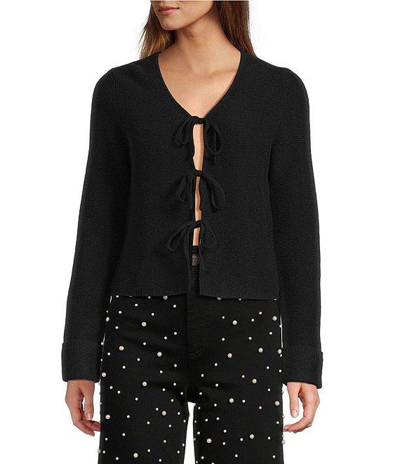 Antonio Melani Lydia V-Neck Long Cuff Sleeve Tie Front Bow Cashmere Sweater