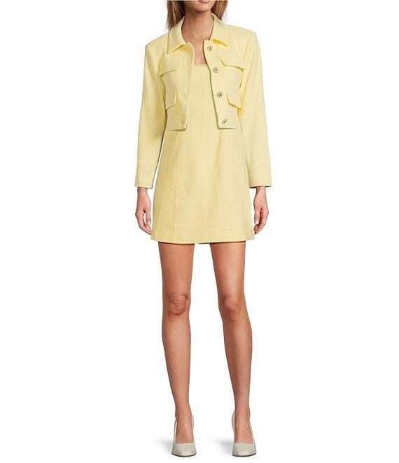 From Antonio Melani, this dress features: Tweed fabrication A-line Scoop neckline Beaded neckline detail Mini length Back zipper and hook eye closure Approx. 32.5" in length Polyester/elastane Dry clean Imported.