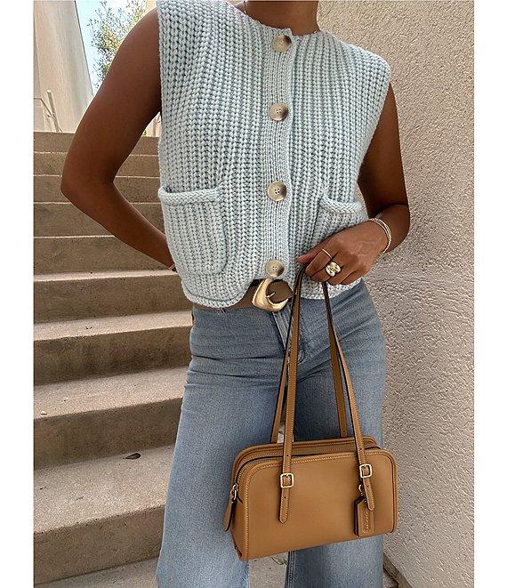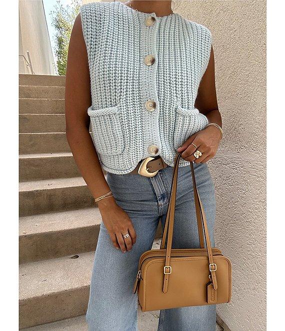 From Antonio Melani, this cardigan features: Chunky knit fabrication Round neckline Sleeveless Front patch pockets Straight hem Button front closure Approx. 17.75" length Acrylic Machine wash Imported.